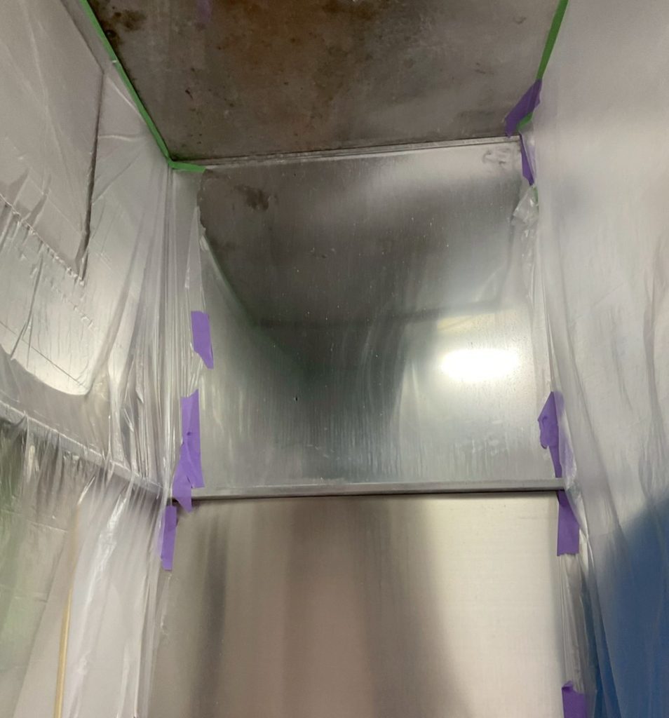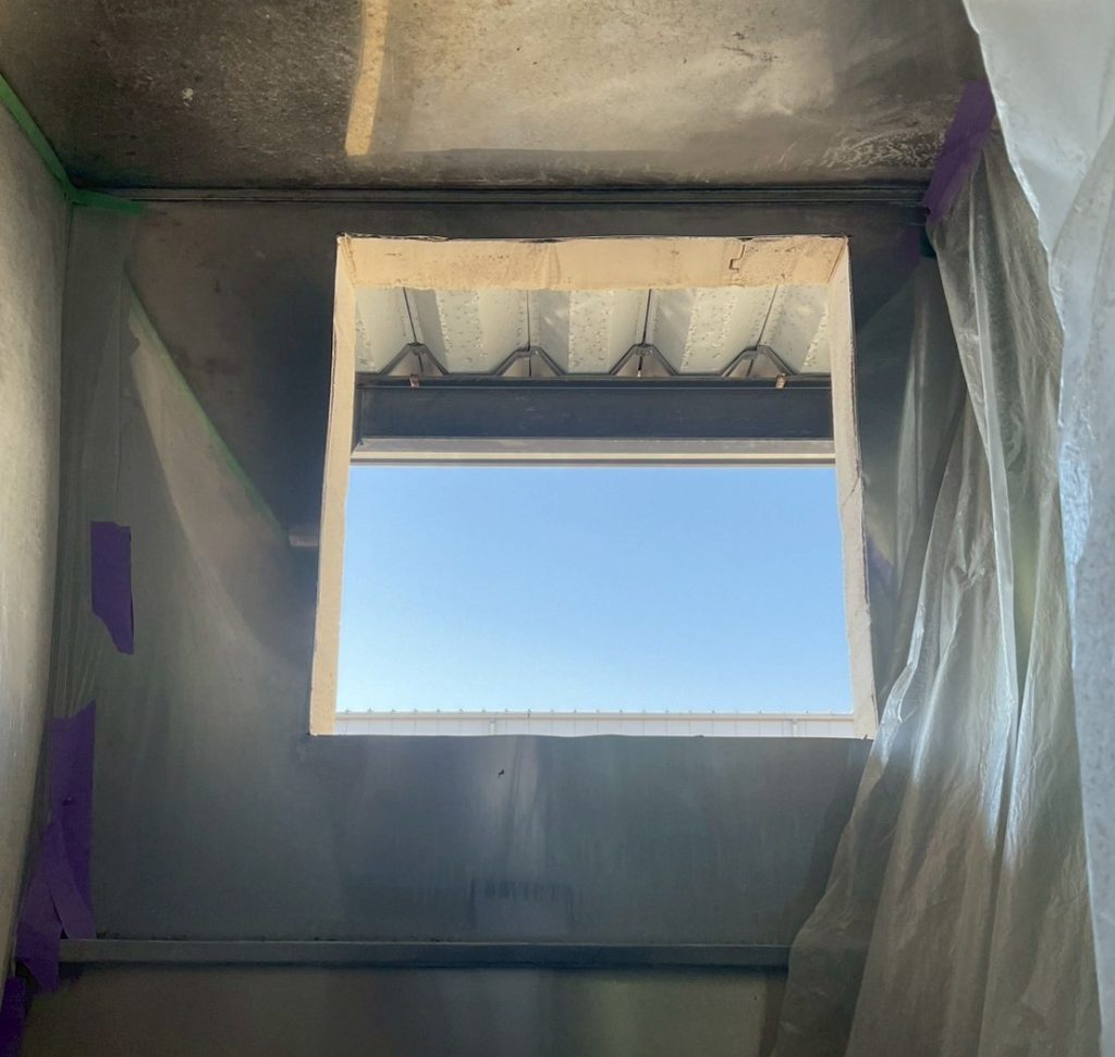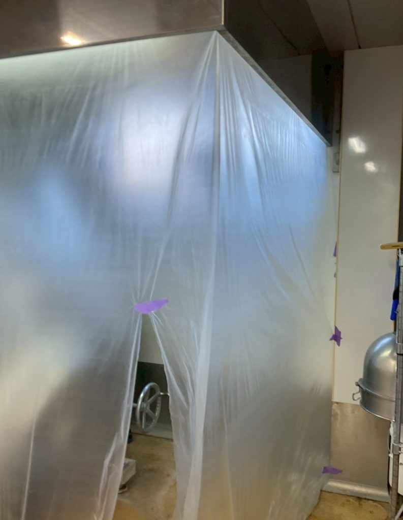 まず、工事中に発生するホコリやゴミが工場の設備や製品に付着しないよう、ビニールシートなどで丁寧に養生を行います。食品を扱う現場ですので、衛生管理には細心の注意を払います。
